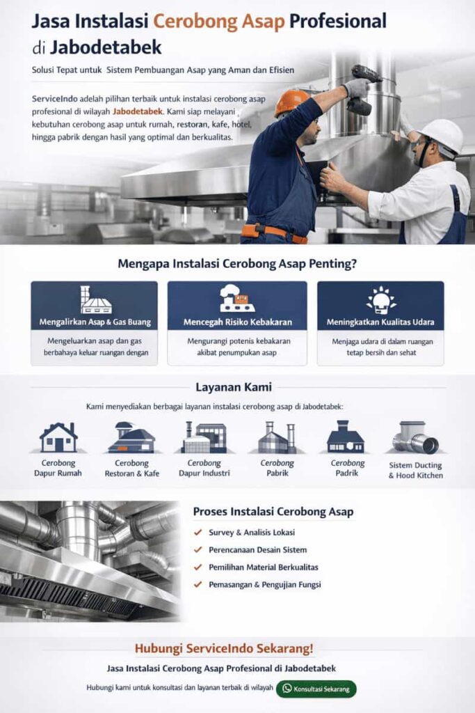 Kualitas udara yang bersih dan sistem pembuangan asap yang aman merupakan faktor penting dalam kenyamanan dan keselamatan sebuah bangunan. Baik untuk rumah tinggal, restoran, kafe, hotel, dapur industri, maupun pabrik, cerobong asap memiliki peran vital dalam mengalirkan asap, panas, dan gas buang ke luar ruangan secara optimal. Oleh karena itu, menggunakan jasa instalasi cerobong asap profesional adalah langkah tepat untuk memastikan sistem bekerja efisien, aman, dan tahan lama.